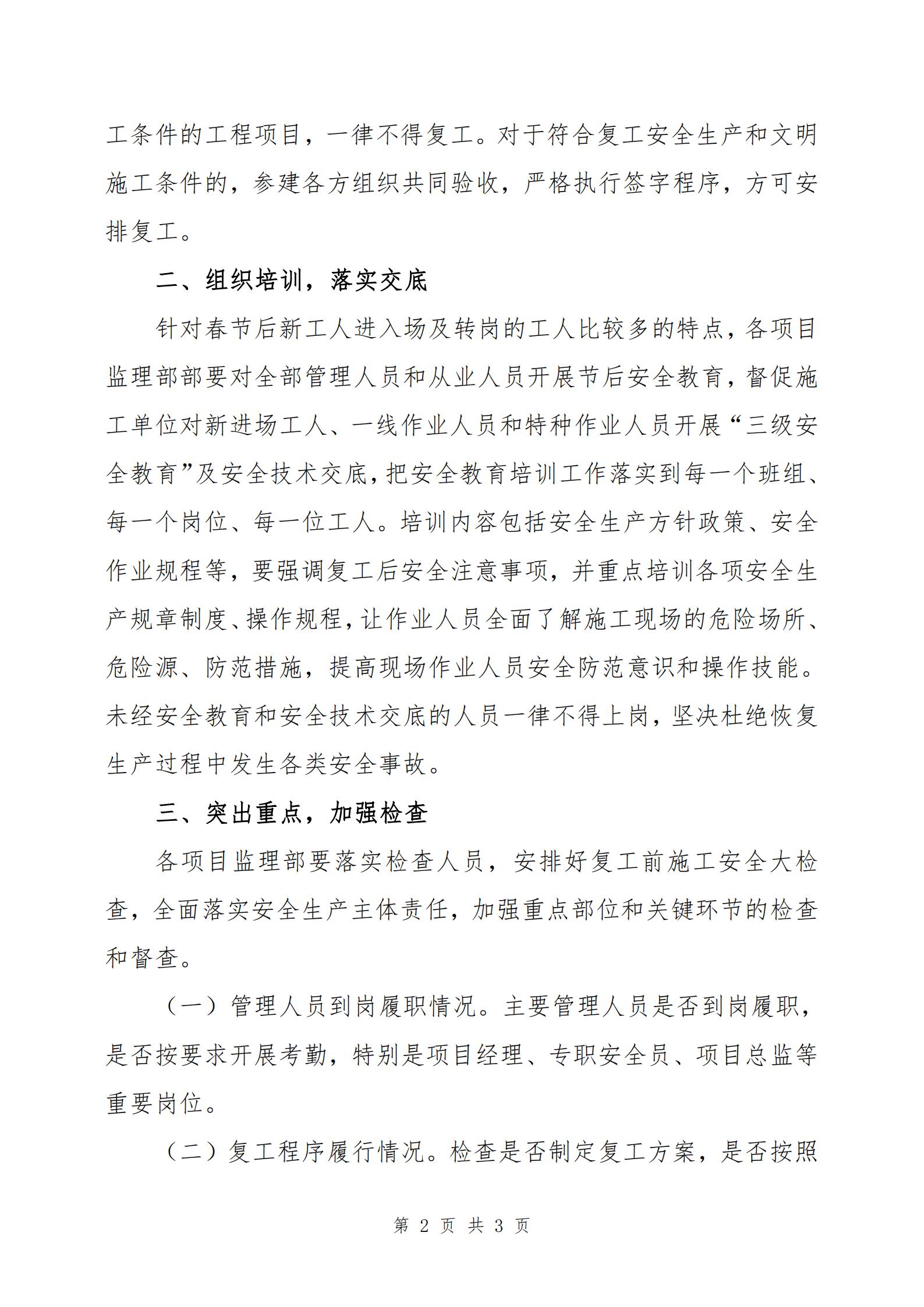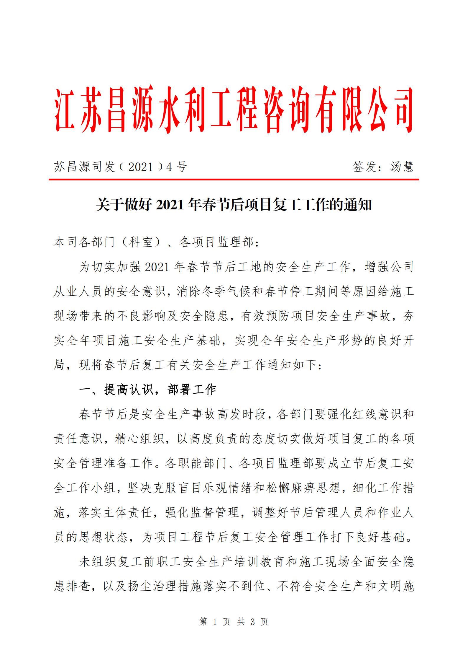 關(guān)于做好2021年春節(jié)后項目復(fù)工工作的通知