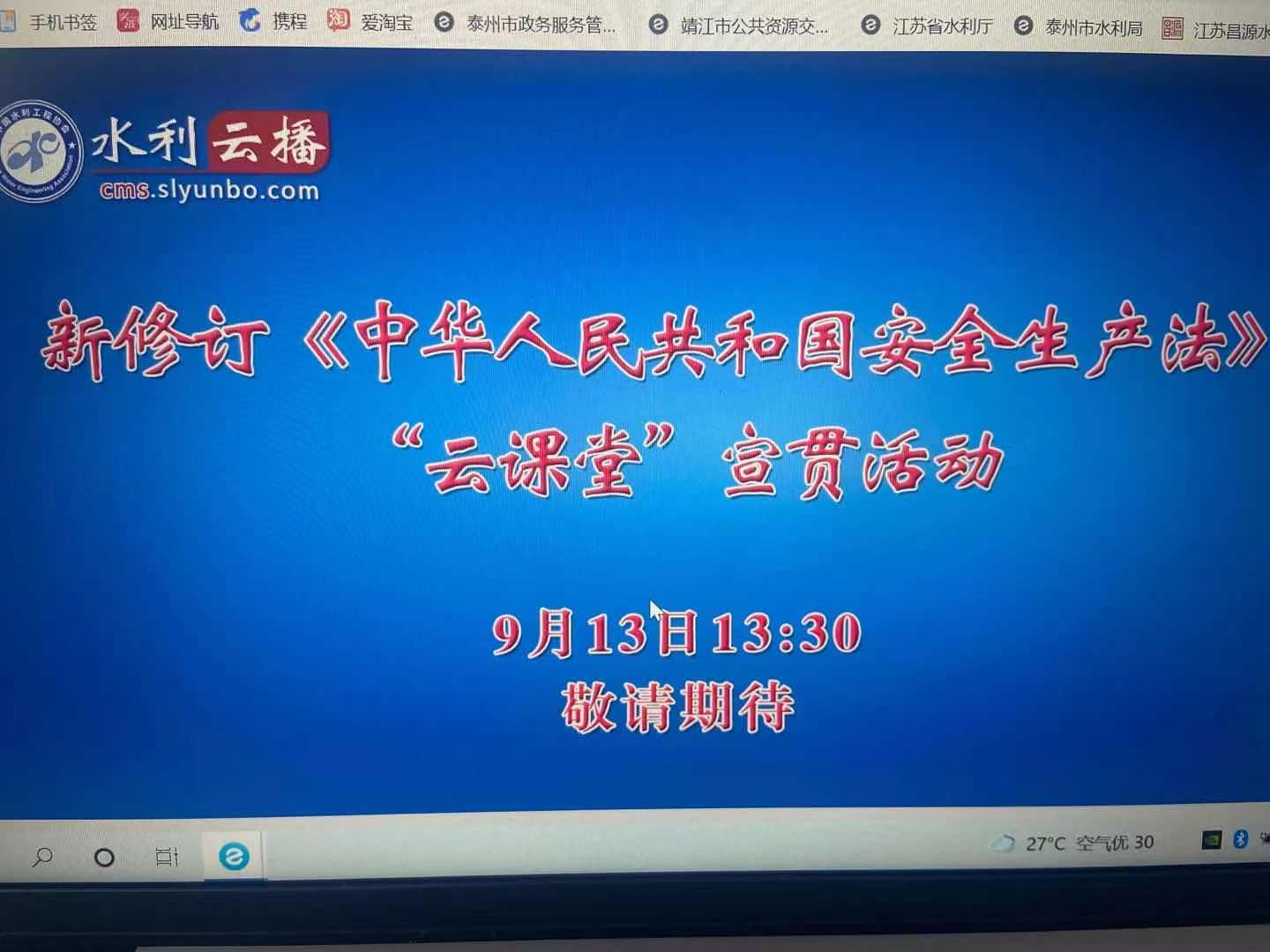 9月13日下午,靖江市中小河流項目監理部組織新安全生產法學習,項目建設處、監理單位、施工單位派員參加。