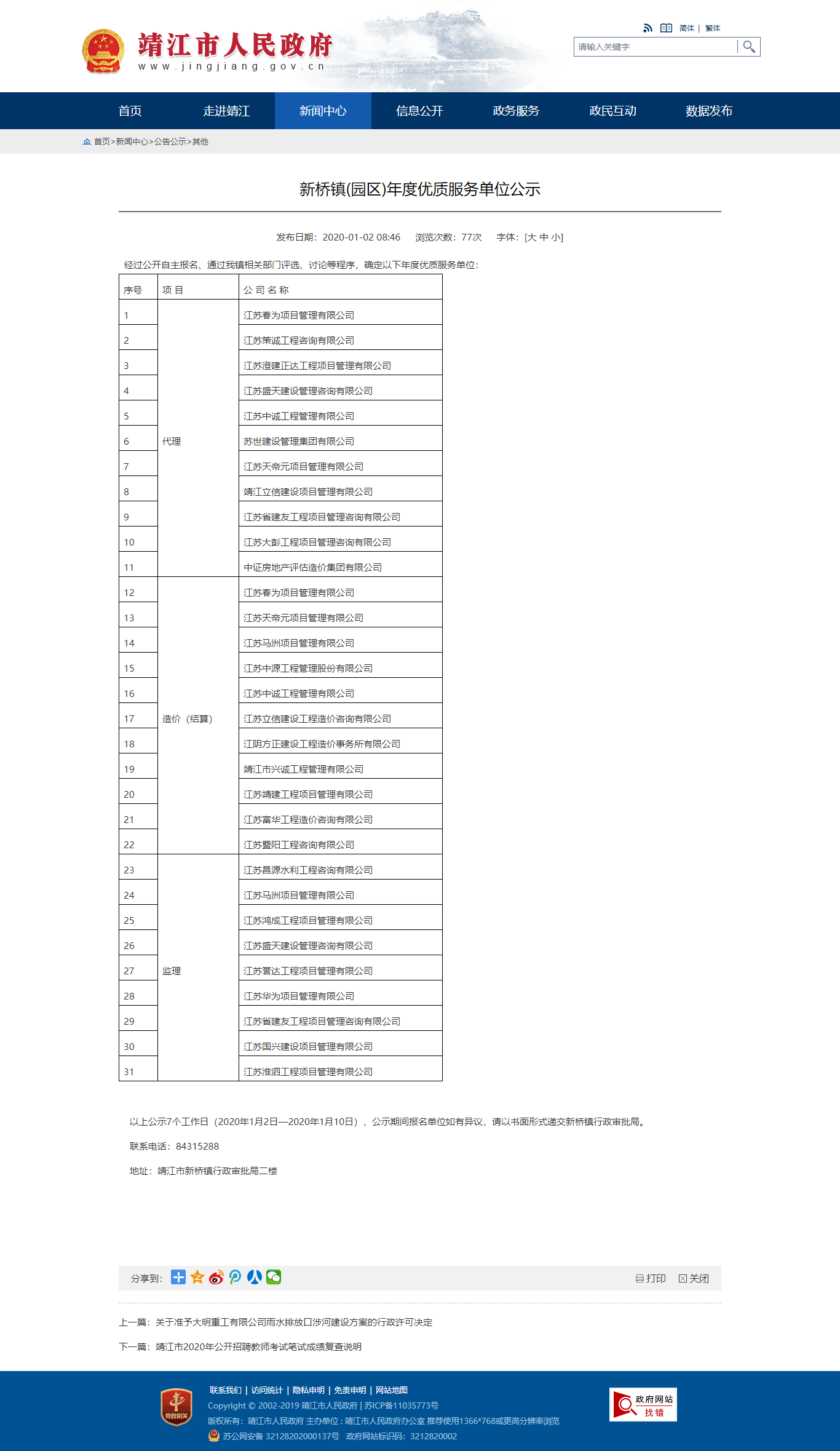 公司被評選為新橋鎮(園區)年度優質服務單位